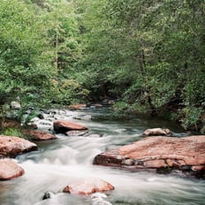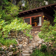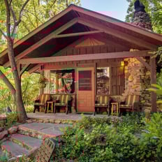 Orchard Canyon on Oak Creek is a quiet getaway cradled in the gorgeous geography of Arizona, along the banks of clear, rushing Oak Creek. This delightful retreat offers an atmosphere of calm juxtaposed against 50-foot-high canyon walls, brushed with bright green moss, and lining the creek itself—where 600,000 gallons of water flow (at about 4 mph) every day. Just two hours from Phoenix (and 1.5 hours from the airport in Las Vegas), the retreat is also accessible from the small nearby town of Sedona. Visitors to the area are likely to discover many opportunities to enjoy the great outdoors. Well-defined (and well-marked) forest and canyon trails here in the mile-high Verde Valley cater to all hiking skill levels; they meander across the 40,000 acres of the national forest around Oak Creek. These paths abound with not just breathtaking views of the canyon and creek but also a splendid array of plant species (including some very large cacti), animal life (including many who are just passing through), and well-camouflaged, almost-to-the-eye birds.