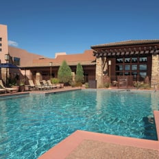 For those planning to visit Sedona, Arizona, the Courtyard Marriott Sedona provides a unique combination of comfort, spectacular vistas, and modern hotel amenities. The gorgeous Red Rock formations serve as a stunning backdrop for the hotel, aptly situated near popular local attractions like the Cathedral Rock Trail, the Chapel of the Holy Cross, and Bell Rock. The hotel's locale makes it easy to experience the natural beauty and culture of Sedona up close. The hotel itself can comfortably accommodate you, with tastefully decorated rooms that include the sort of luxury you’d expect and the sort of amenities you’d hope for... An outdoor pool and hot tub, a fire pit area with comfy seating, and a fitness center afford various options for ways to wind down after a long day of enjoying Sedona. The hotel staff are always friendly and helpful, doing what they can to make your stay a positive one. While primarily a leisure travel destination, the Courtyard Marriott Sedona does boast a couple of meeting spaces, which I poked my head into during my stay. Both spaces provide good internet access and are equipped to handle presentations of varying kinds. I didn't use either space, but I can say that both rooms and their furnishings looked conducive to any number of fun work projects.