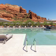 Nestled within Sedona's breathtaking red rock formations, Poco Diable Resort is a truly unique retreat. It offers an uncommon and delightful mix of relaxation, adventure, and vivid personal touches that too many hotels today overlook. Beyond first-class service that's the right blend of friendliness and professionalism (a hard combo to find), the resort has a fantastic setting and inviting accommodations—from cozy standard rooms to spacious mountain-view suites. Postcard-perfect, nearly all of them feature private balconies with views that might duly astound even the hard-to-impress.